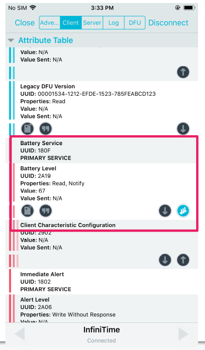 I install and use ITD verson 0.07 and lastest version to test my watch, i can get some information as heat rate, motion, steps... but not battery.
